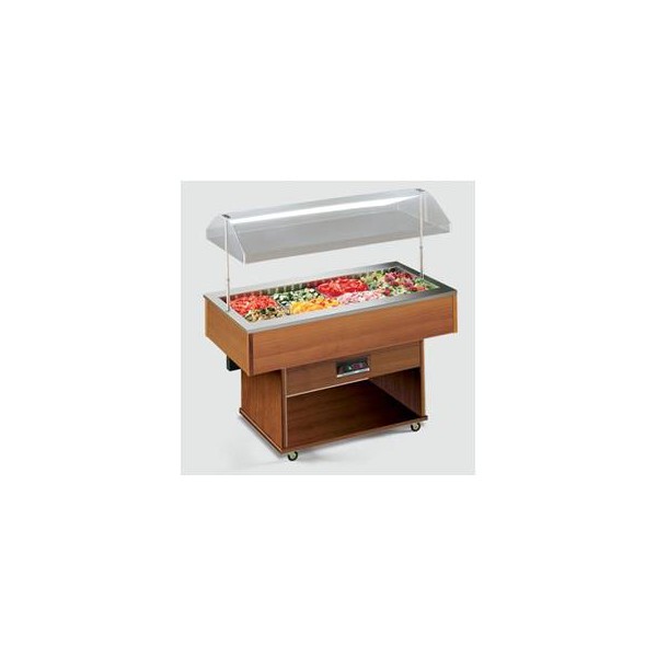 Buffet froid en bois, central, avec ouverture manuelle.